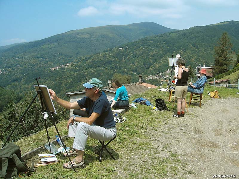 Die Landschaftsmalerei eignet sich besonders gut um sich in einer Arbeits– und Lebensgruppe zu erfahren. An einem malerischen Ort, z.B. im Tessin, in Italien oder Frankreich leben Studierende und Lehrer zusammen, malen zusammen, kochen zusammen, helfen einander und ermutigen sich gegenseitig. Das anregende Ambiente, weg vom Alltag bringt mancheine/n zu Höchstleistungen und fördert Kooperation und Mitverantwortung unter den Studierenden.