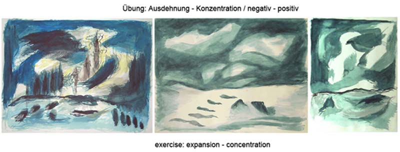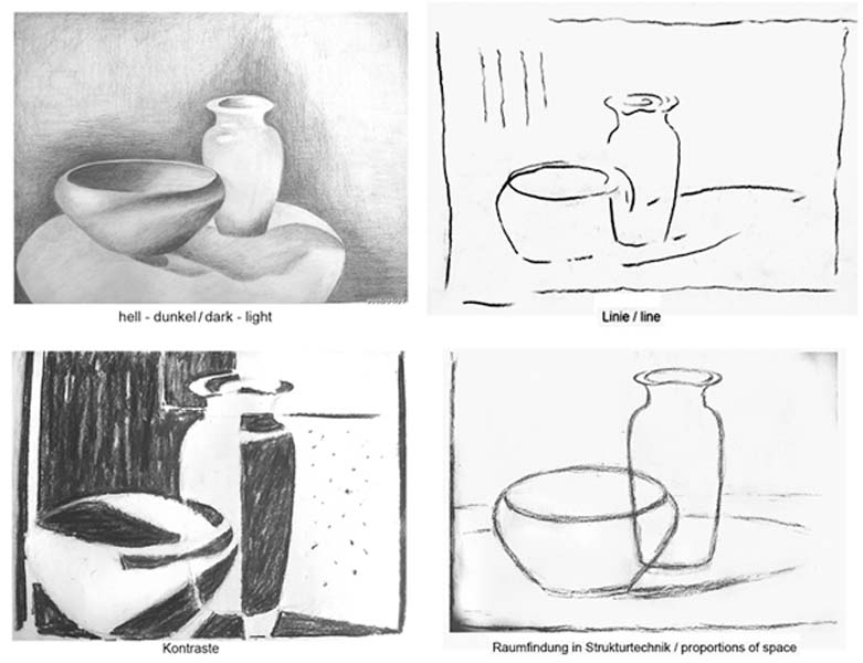 Während beim Malen vor allem die Empfindung angesprochen und vertieft wird, spricht das Zeichnen mehr die Form- und Gestaltungskräfte an. Die so erworbenen Fähigkeiten können dann in das farbig Malerische einfliessen und dieses bereichern. Beim Zeichnen am Objekt (Kopie, Stillleben, Landschaft, Tiere, Porträt und menschliche Gestalt) wird die Beobachtungsfähigkeit geschult. Im Arbeiten aus der Erinnerung kann diese noch gesteigert werden.