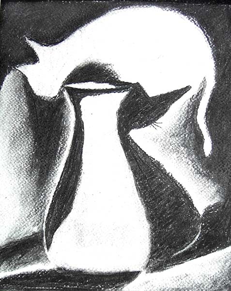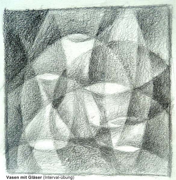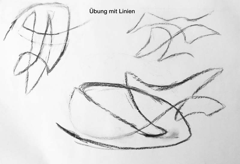Im „Freien Zeichnen“ studieren wir unter anderem die Polarität von Weiss und Schwarz. Das Verständnis von Raum, Form, und Fläche bildet sich durch Übungen im Hell-Dunkel, im Rhythmus der Gesten, im Linearen und in den Kontrasten. Die Phantasie wird angeregt.